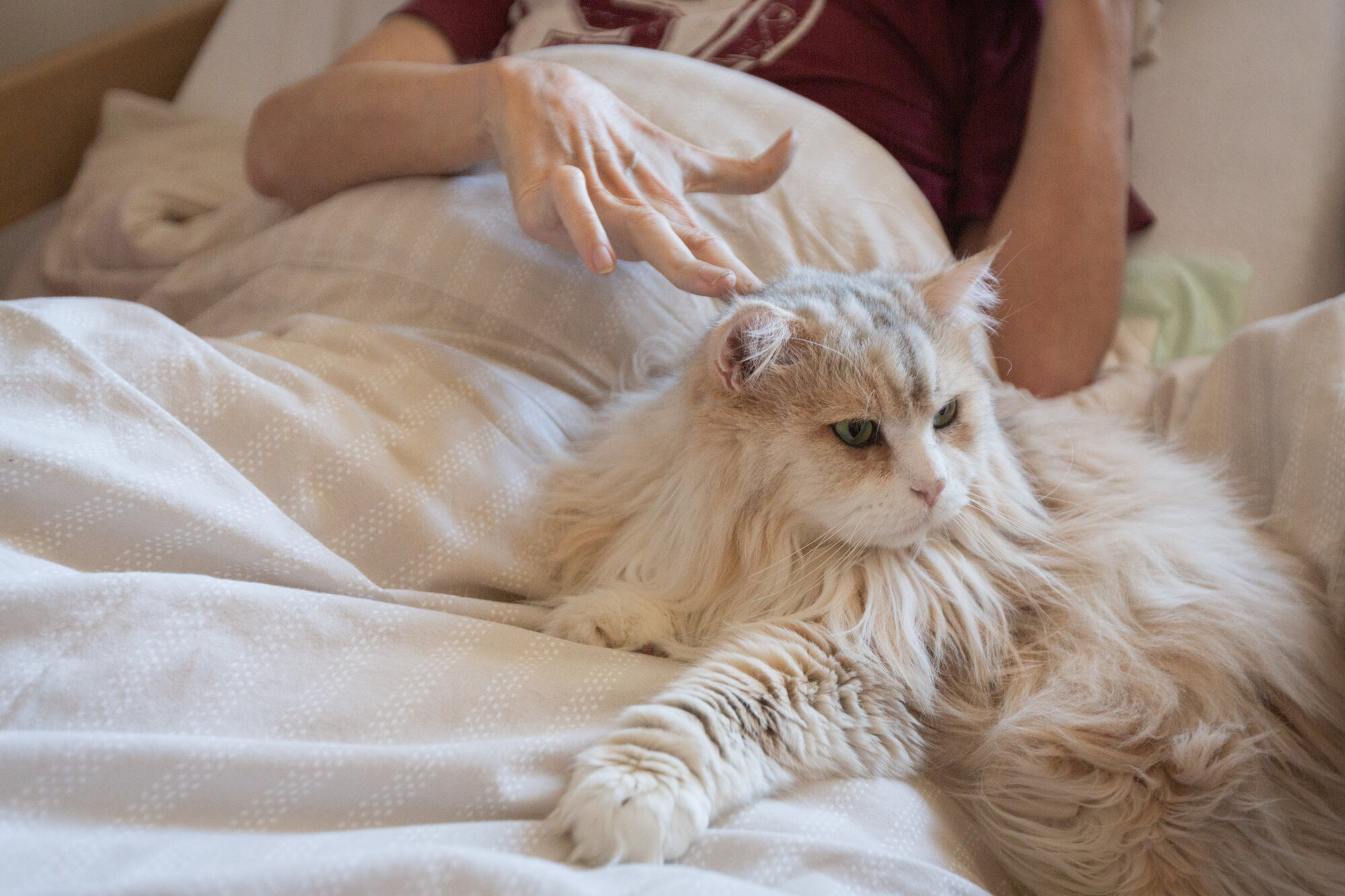 When the doors of the Sue Ryder nursing home open and a cat strolls in, the whole room seems to light up. Laughter, gentle strokes, long-forgotten memories… That’s how furry joy is born — professionally known as feline therapy. Two Siberian beauties, Benjamin and Flynn — therapy cats belonging to our colleague Radka Kulhánková — now visit Sue Ryder regularly. And because one can never have too many helpful paws, a new recruit joined them this summer: Dobby. He’s a Ragdoll — soft, beautiful, and supposedly calm. But at the moment he’s going through full-blown adolescence, which means that one day he purrs like an angel, and the next he’s hanging from the chandelier with little devils dancing in his eyes. He belongs to Lenka Kepková, our activation coordinator, who is now bravely coordinating not only seniors, but also feline hormones. Have a look.