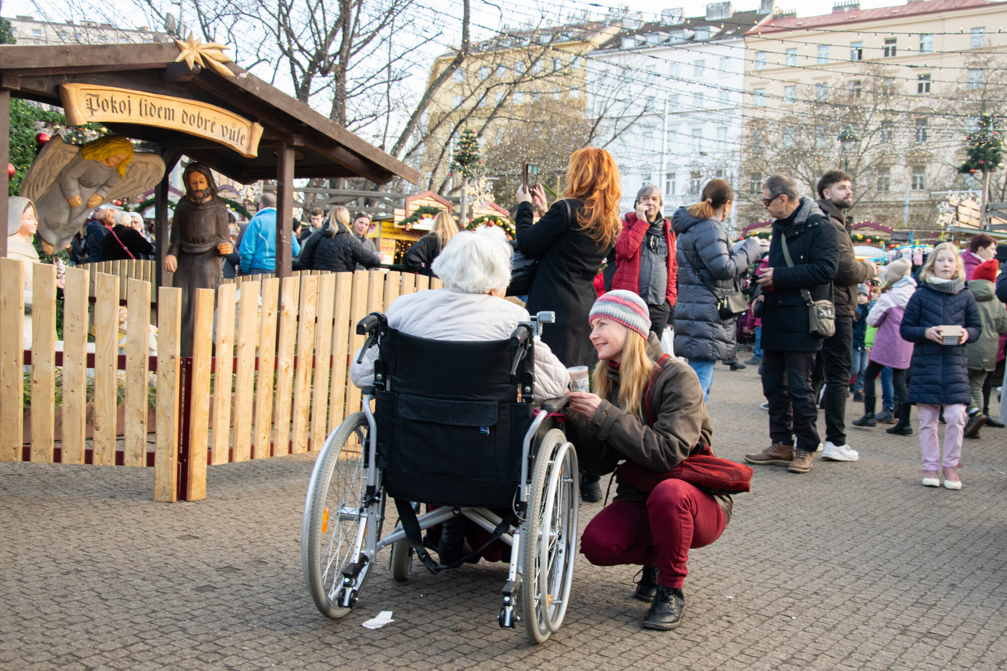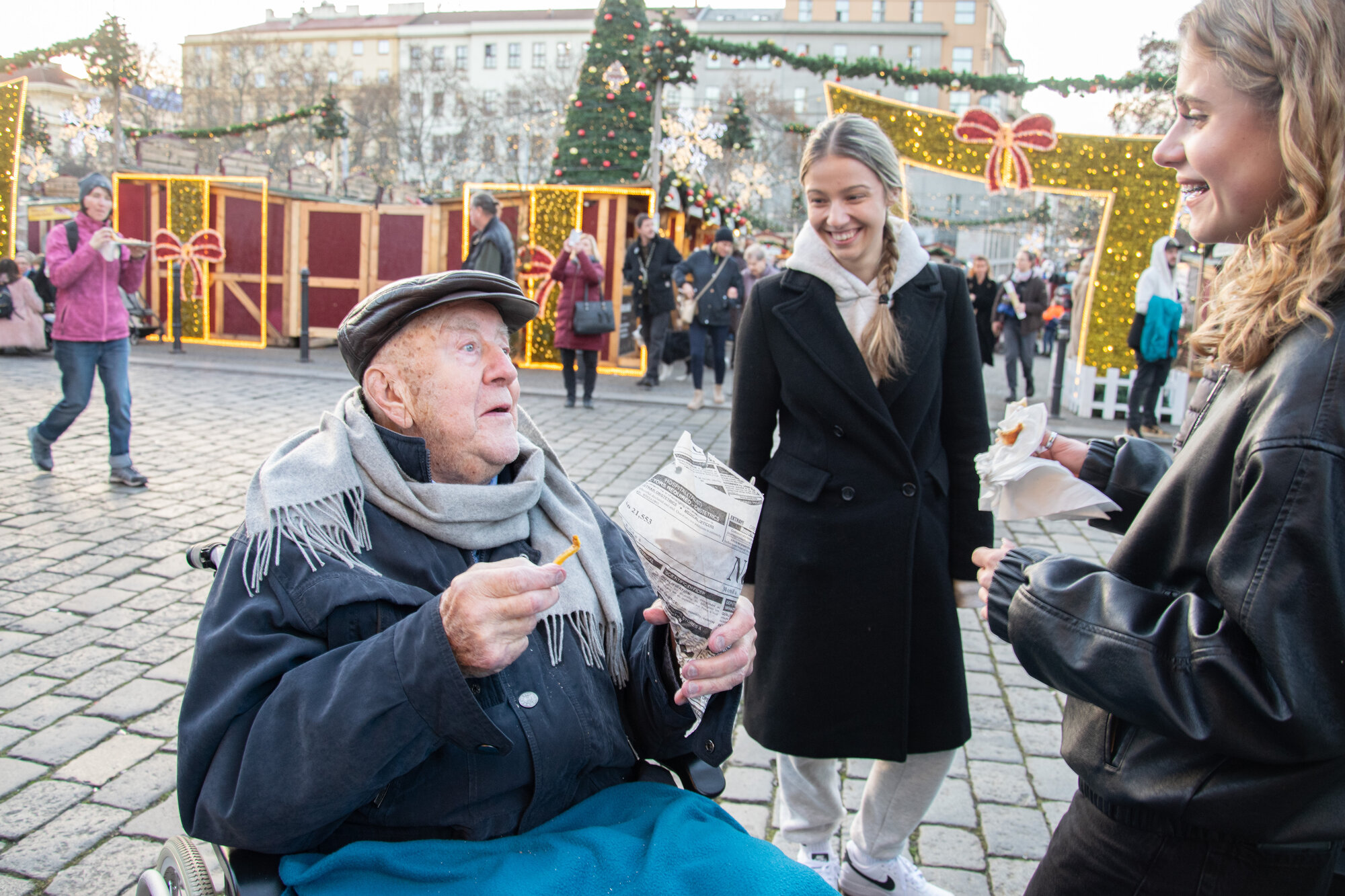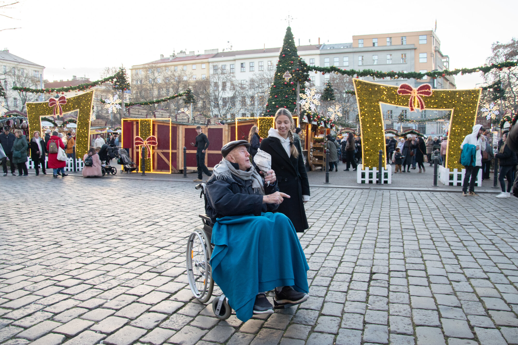 To je pan Jiří (94 let) na výletě na Vánoční trhy. Paměť mu dává pořádně zabrat, ale v tu chvíli si znovu připadal jako součást velkého světa. A taky jako pravý gentleman, který může nabízet svoje milované hranolky všem přítomným dámám. ✨ Změna prostředí, nové podněty a lidská společnost zlepšují paměť, náladu a životní energii i u těch nejkřehčích seniorů. A přesně proto se znovu otevírá políčko Výlety na milovaná místa. ✨ V roce 2026 je jich v plánu deset. Teď čekají jen na šlechetné dárce. Přidáte se, prosím? ❤️